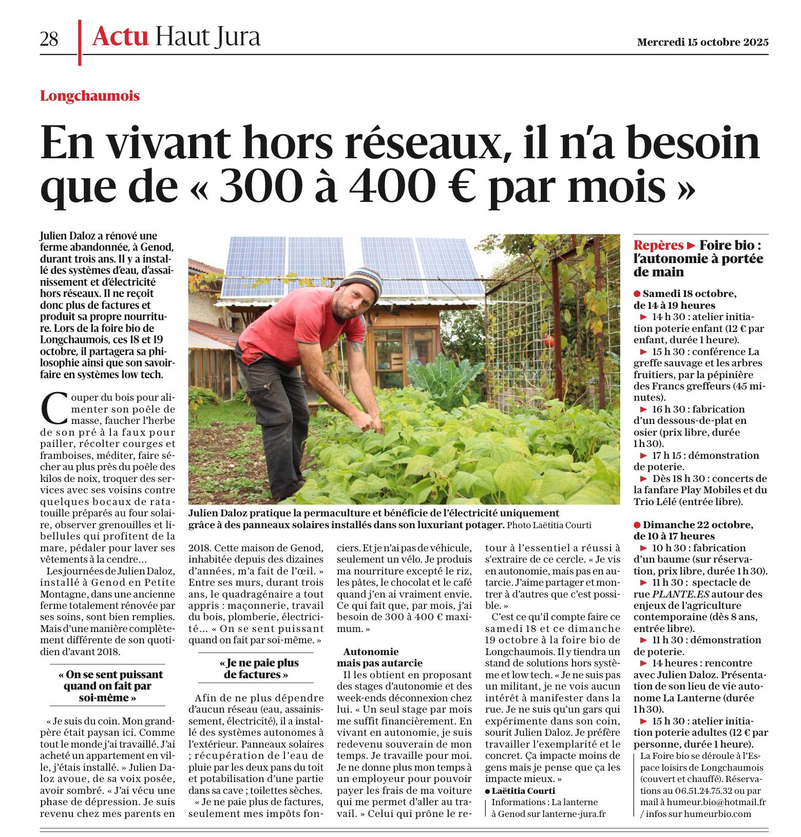J’ai fait le choix de déployer tout mon temps et mon énergie à construire cette réalité locale qui me convient plutôt que de lutter contre un système global qui ne me convient pas.